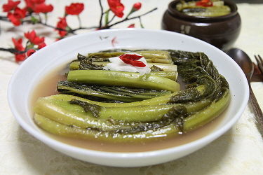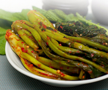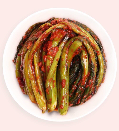 가장 기본적인 갓김치로, 갓과 양념 재료를 섞어 발효시킨 후 먹습니다.