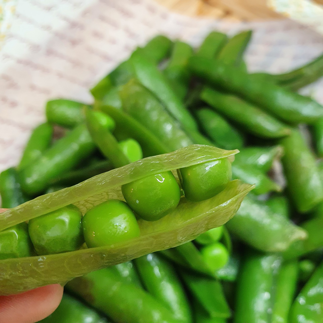 이렇게 삶아진 완두콩은 그대로 먹거나 다른 요리에 활용할 수 있습니다.
