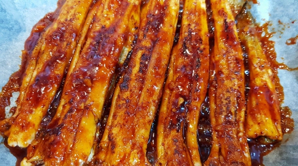 - 장어를 잘 씻어 물기를 제거한 후, 어느 정도 크기로 자르세요. (대체로 4~5cm 정도로 자르는 것이 좋습니다.)