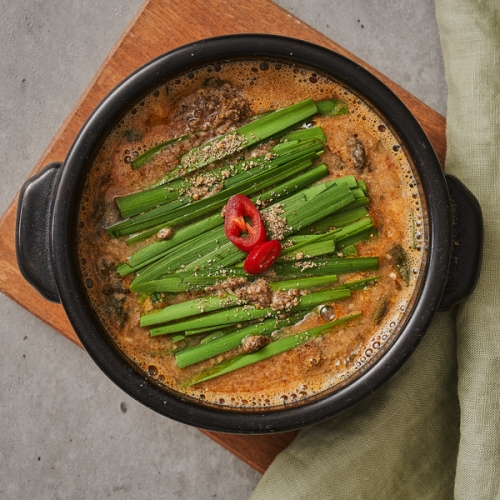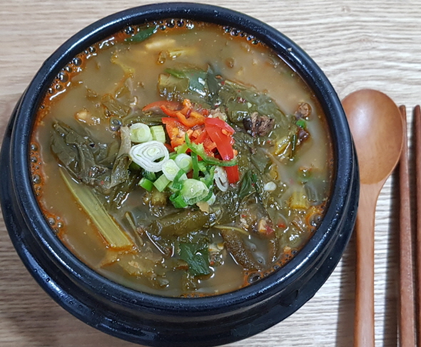 - 고춧가루, 고추장, 된장을 넣고 중간 불에서 약 15분 정도 끓여주세요.