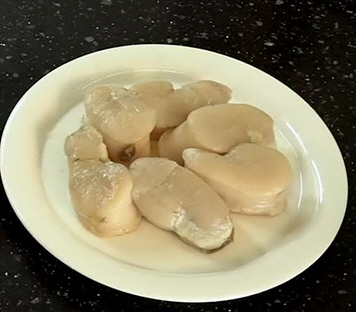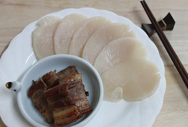 - 끓는 물에 키조개 관자를 넣고 1분 정도 삶아주세요.