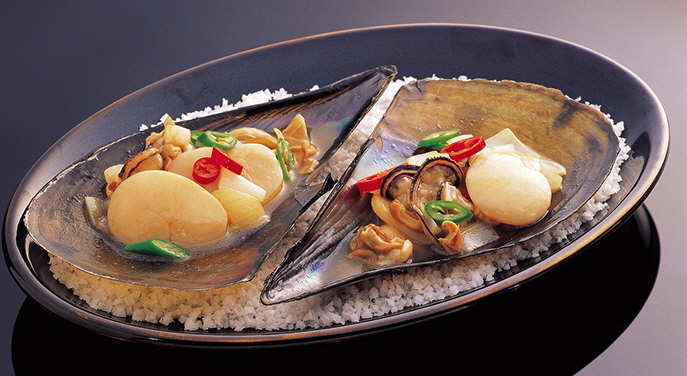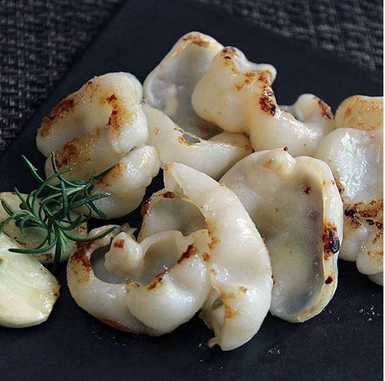 - 구운 키조개 관자에 소금과 후추를 뿌려주세요.