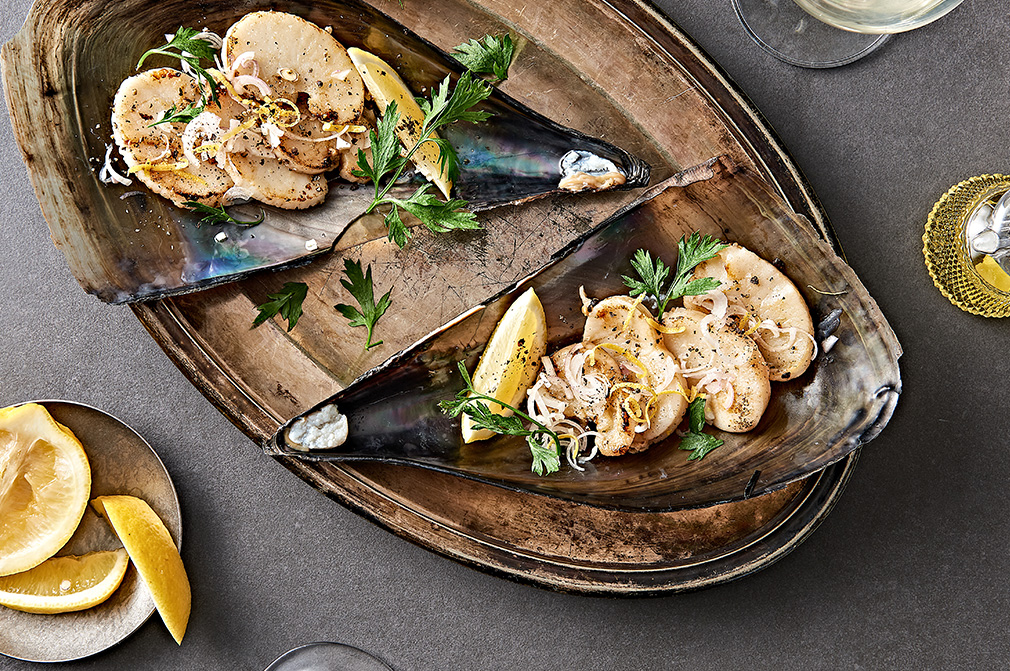 - 재료: 키조개 관자, 소금, 후추, 올리브 오일