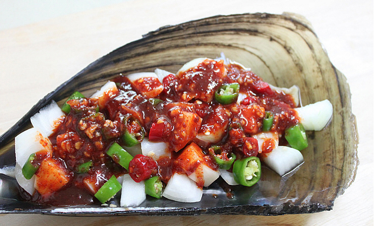 - 준비: 키조개 관자는 껍데기와 내장을 제거한 후 깨끗이 씻어주세요. 마늘과 생강은 다지고, 청양고추는 송송 썰어주세요.