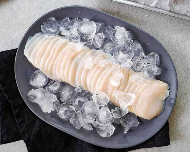 - 삶은 키조개 관자를 찬물에 담가서 식힌 후 물기를 제거해 주세요.